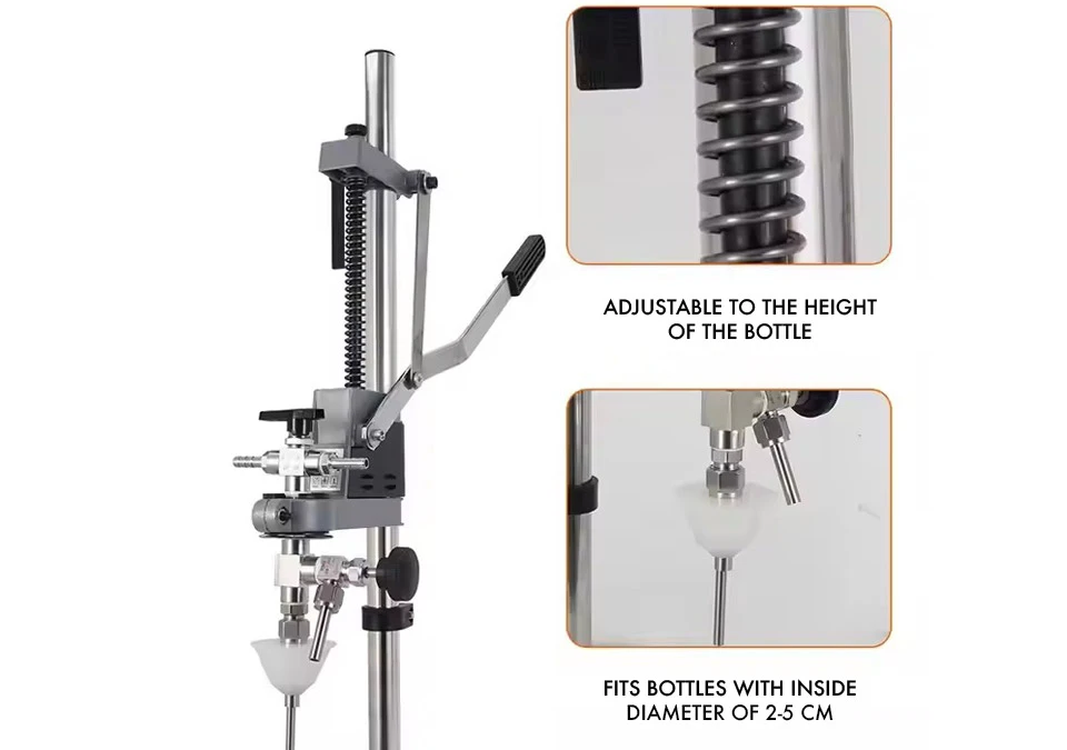 Med denna rostfria mottrycksfyllar-station kan du tappa öl och annan dryck direkt i flaska från fat utan skumbildning, exponering för syre och förlust av kolsyra. Passar de flesta typer av flaskor.